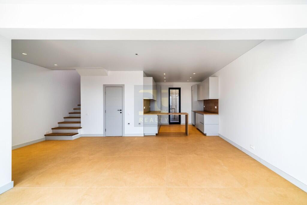 Die Innenausstattung umfasst ein helles Wohnzimmer, das mit der Küche verbunden ist, drei Schlafzimmer, zwei Badezimmer und zwei Terrassen, wodurch eine komfortable Balance zwischen Innen- und Außenleben geschaffen wird.
