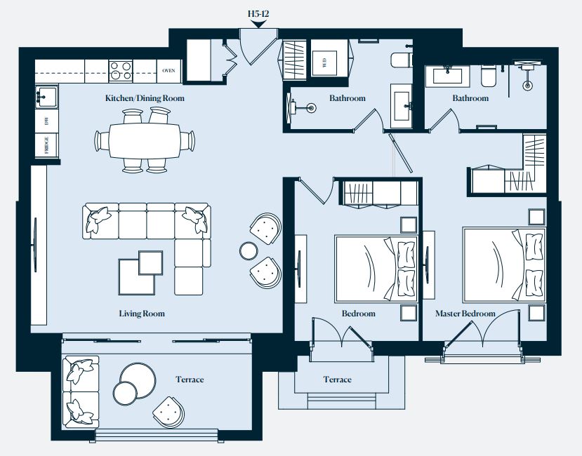 -H5-12, Innenfläche 91,68 m2, Terrasse 12,10 m2, Gesamtfläche 103,76 m2, Preis 1.167.000 EUR