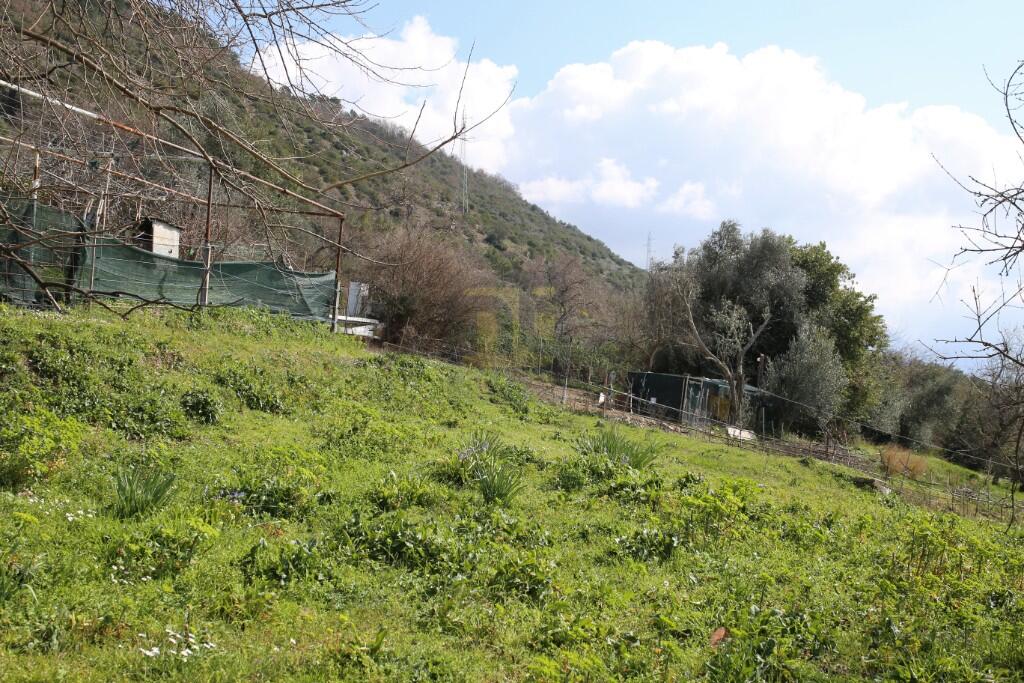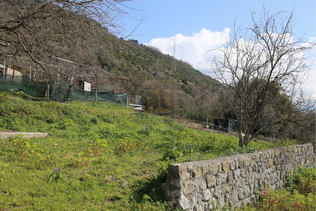 The plot sits slightly above the city, offering open views of the bay and a setting surrounded by greenery and traditional stone terraces typical for this part of the coast.