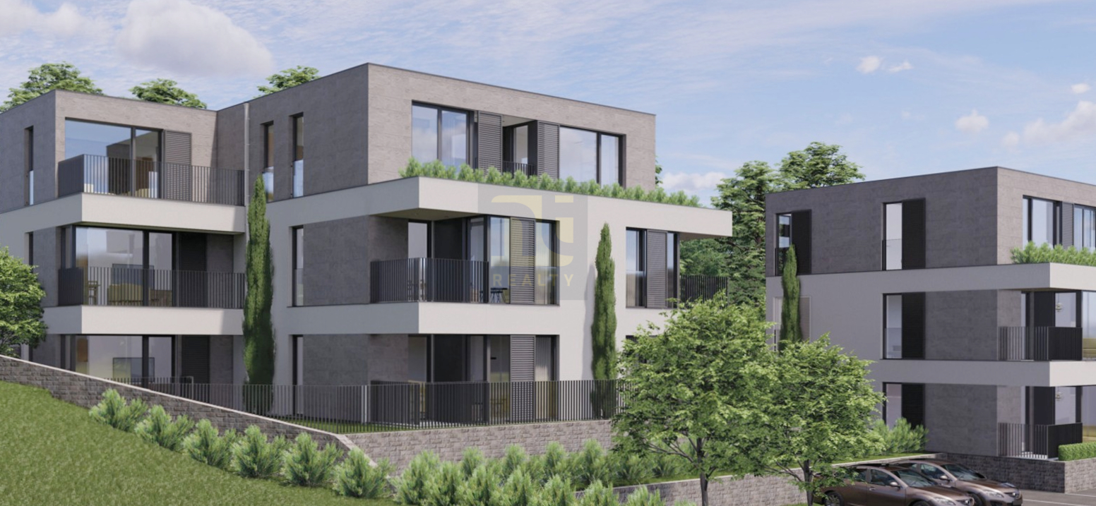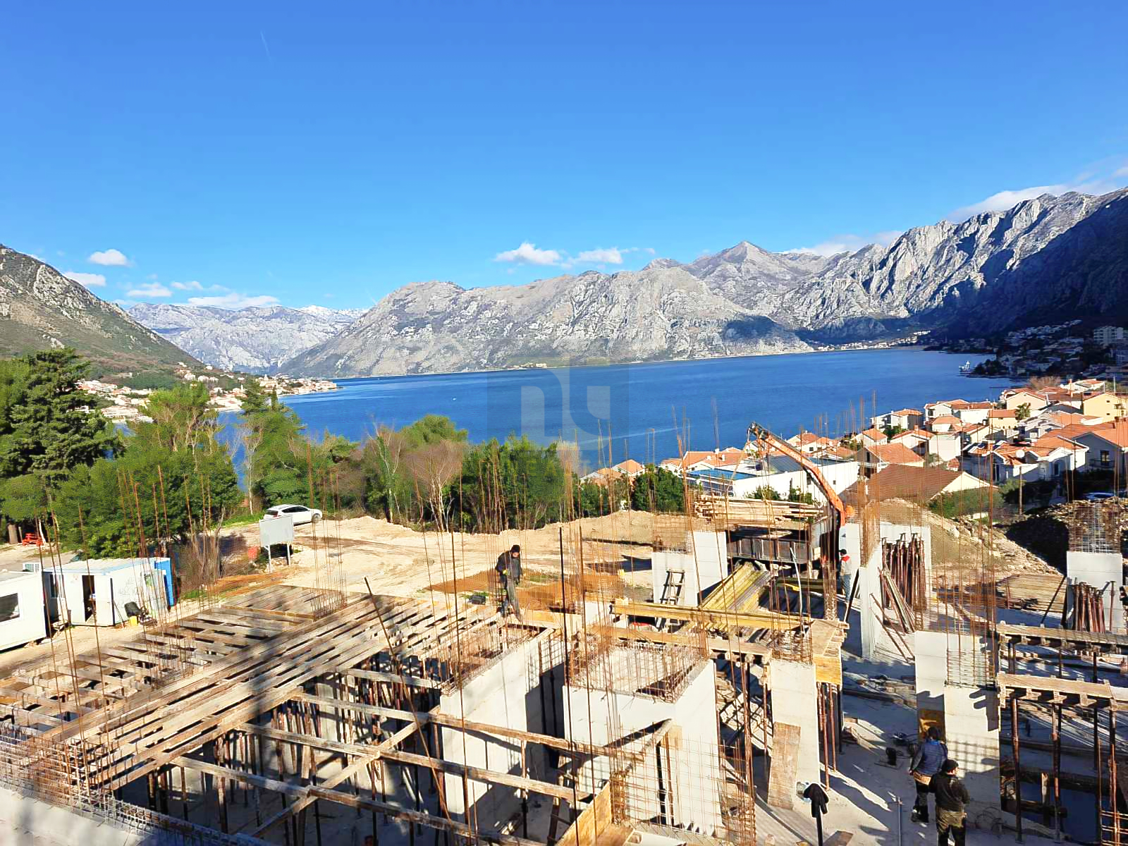 S15 ist mit 49,29 m² die kompakteste der verfügbaren Wohnungen in der Anlage — und der am besten zugängliche Zugang zum ersten Stock von Gebäude 2. Was der erste Stock über dem Boden bietet, ist eine klarere Aussicht: Die Sichtlinie durchquert die unmittelbare Dachlinie und öffnet sich über die Bucht von Kotor nach Prcanj, Muo und den Vrmac-Bergen, ohne den Vordergrund, den das Erdgeschoss immer mit sich bringt.