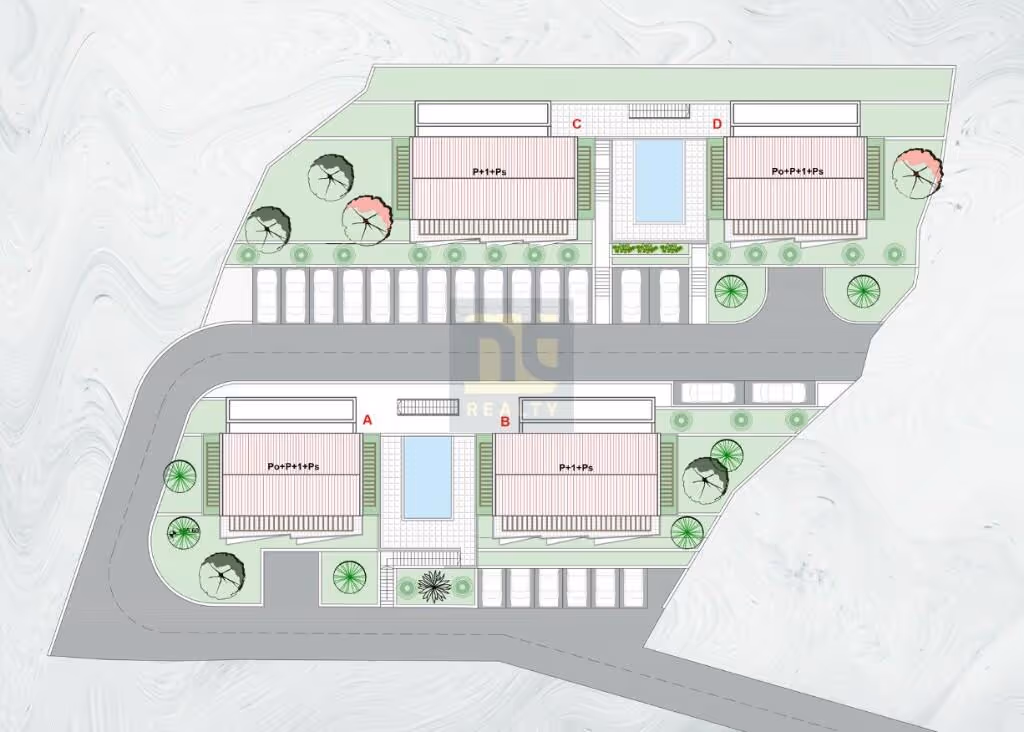 Entire development consists of four residential blocks (A, B, C and D) that are mutually connected with two shared pools, an amount of greenery and landscaped pathways as well as thoughtfully planned and secured parking area.