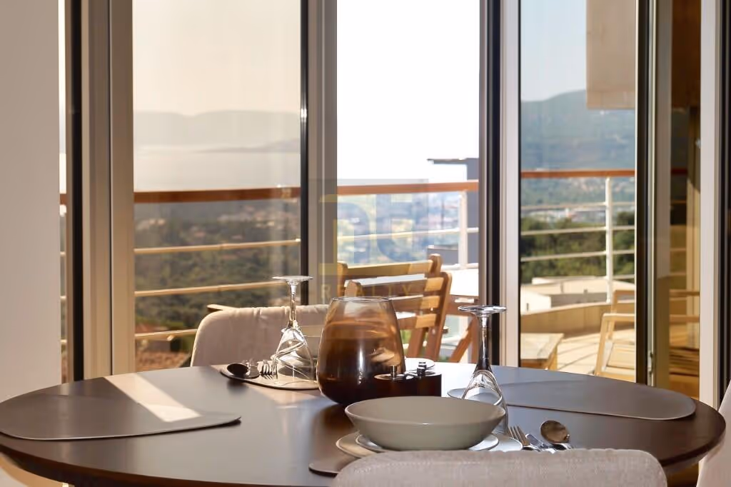 The property extends to 121 m² in total, including a generous private terrace enjoying far-reaching views across the Bay of Kotor and surrounding mountains.
