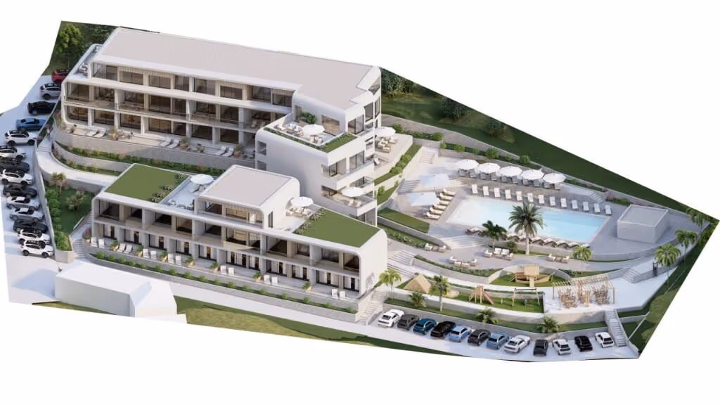 The architectural concept has been crafted to maximise both light and outlook – every apartment enjoys panoramic views of the Adriatic, while the use of natural stone façades and high-quality finishes throughout reflects understated sophistication.