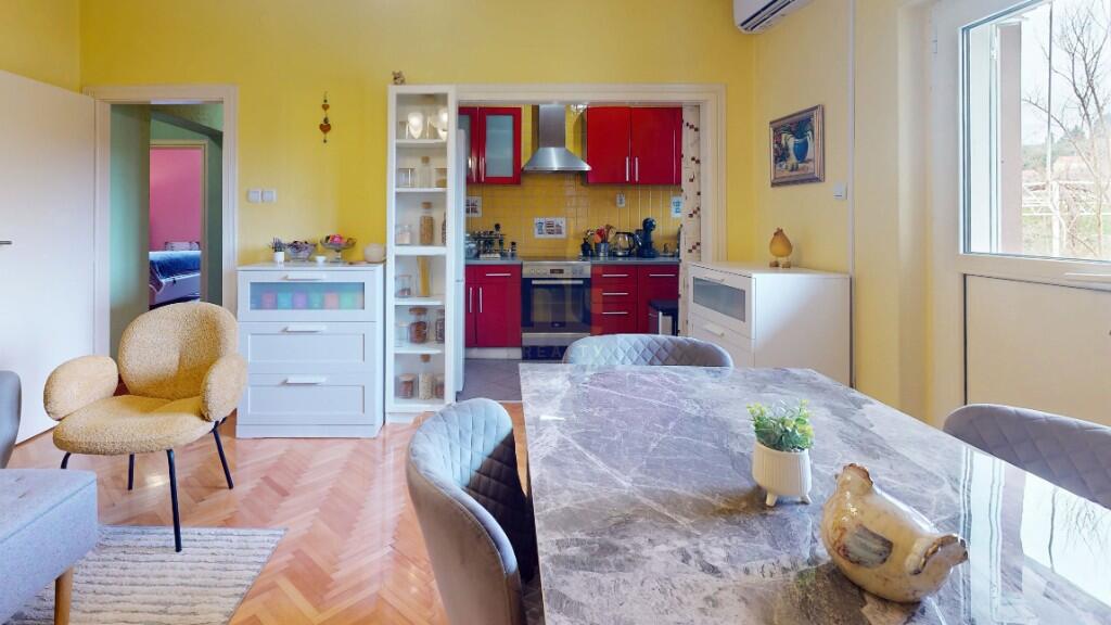 A four-room semi-detached raised bungalow of 105 m² in Radovići village, Tivat municipality, east-facing with views of Lovćen and three stone churches. The property includes a separate 9 m² outbuilding on the title deeds — kitchen and bathroom — a basement of approximately 30 m² with above-ground windows and development potential, and a 318 m² plot with eight mature vines growing over a pergola above the gated driveway. Three air-conditioning units. Fully furnished throughout. Voli supermarket approximately 200 m on foot. Luštica Bay 1.1 km / 3 min; Trašte Bay (Plavi Horizonti) beach2.3 km / 5 min; Tivat Airport 9.6 km / 13 min; Kotor Old Town 11 km / 17 min; Tivat town 12 km / 17 min; Porto Montenegro 13 km / 21 min. €250,000.