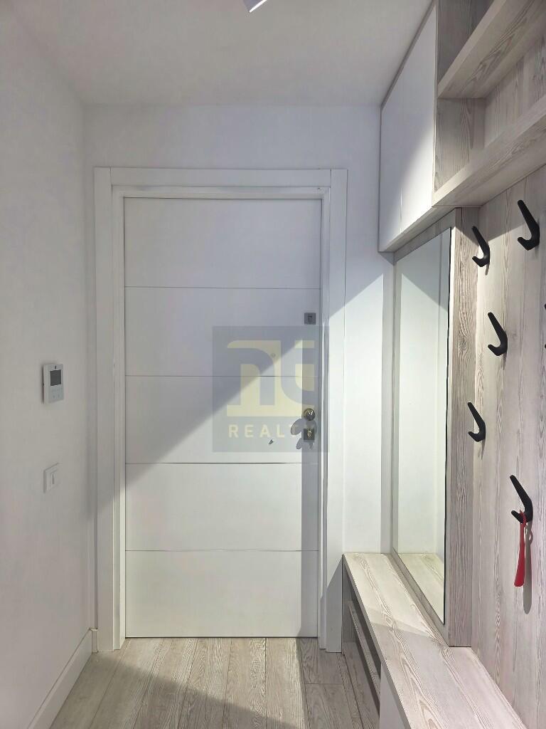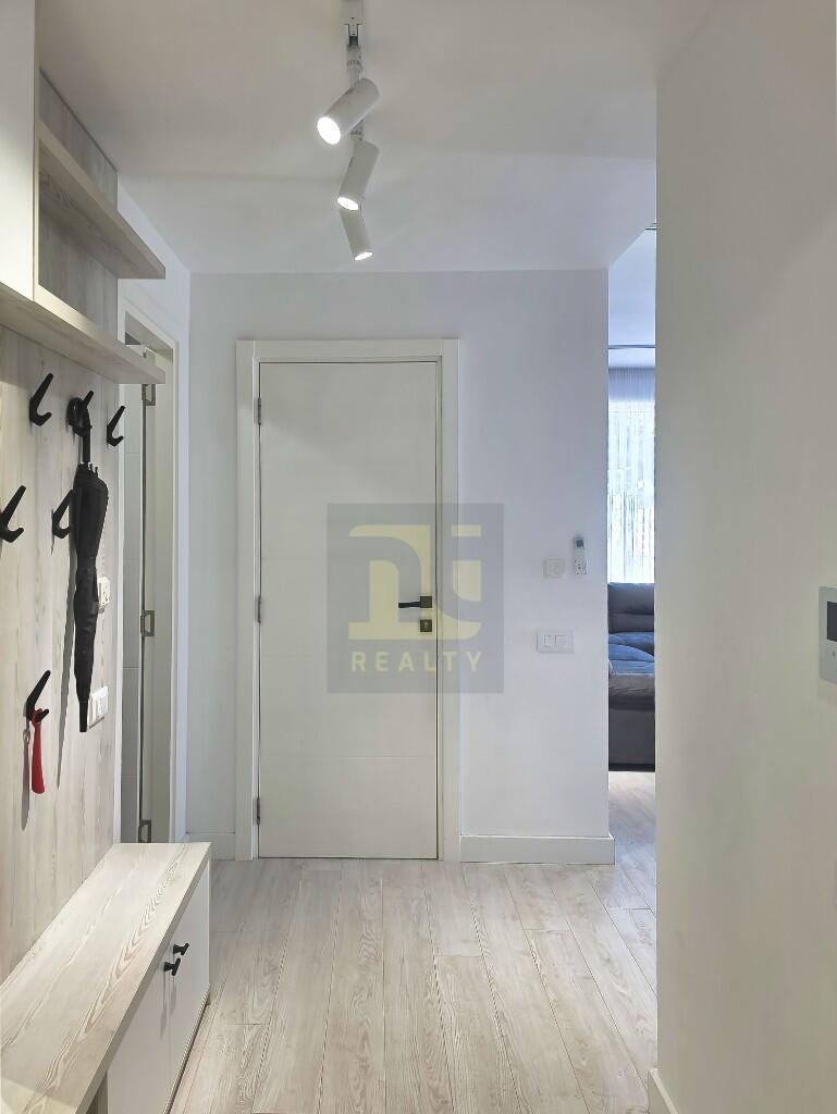 A two-bedroom apartment of 56 m² on the second floor of Panorama, a contemporary building in the Mažina neighbourhood above Tivat town, with lift access, underfloor heating and air conditioning throughout. The building offers an outdoor swimming pool and jacuzzi on a wood-effect ceramic sun deck, a timber-lined sauna with a picture window facing the bay, spa shower facilities, and a residents' lounge. Secure underground parking in space one — the easiest to manoeuvre in the complex — with an adjacent lockable storage unit. Fully furnished and equipped throughout. Porto Montenegro 1.5 km / 6 min by car; Tivat town centre 1.4 km / 5 min; Tivat Airport 3.8 km / 11 min. €215,000.