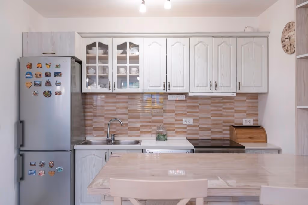 This cosy 1-bedroom apartment is located in Kalimanj, just a few steps from great restaurants, supermarkets, grocery stores, and less than 10 minutes from the centre of town. The apartment is fully furnished, situated on the ground floor with a size of 40m2. It consists of 1 bedroom, 1 bathroom, and an open-plan living area with a fully equipped rustic kitchen and a 14m2 terrace with a closed area. The terrace is accessible from both the bedroom and the living room, making it convenient if you wish to expand either room. The price includes a garage parking space and 8m2 of storage.