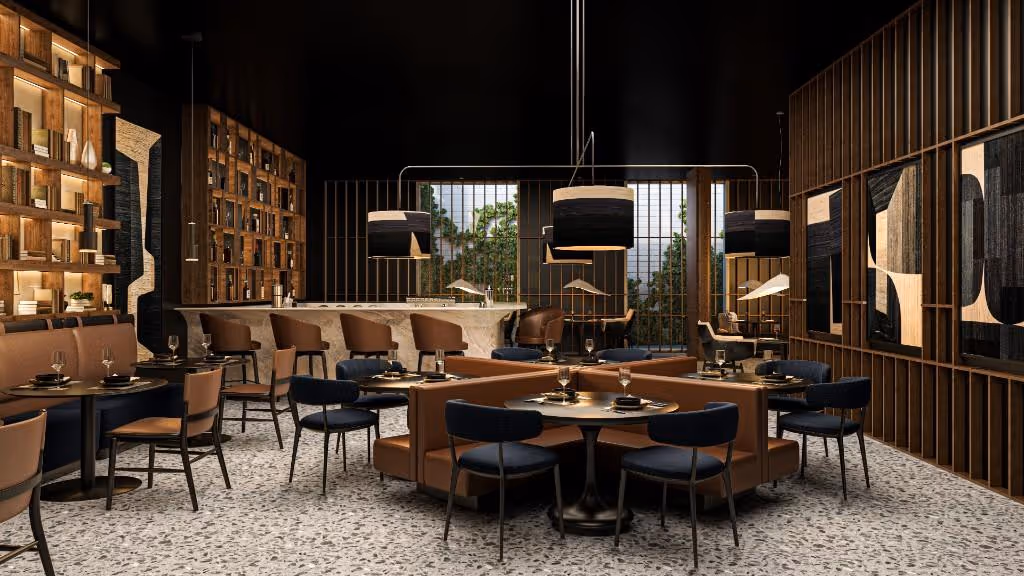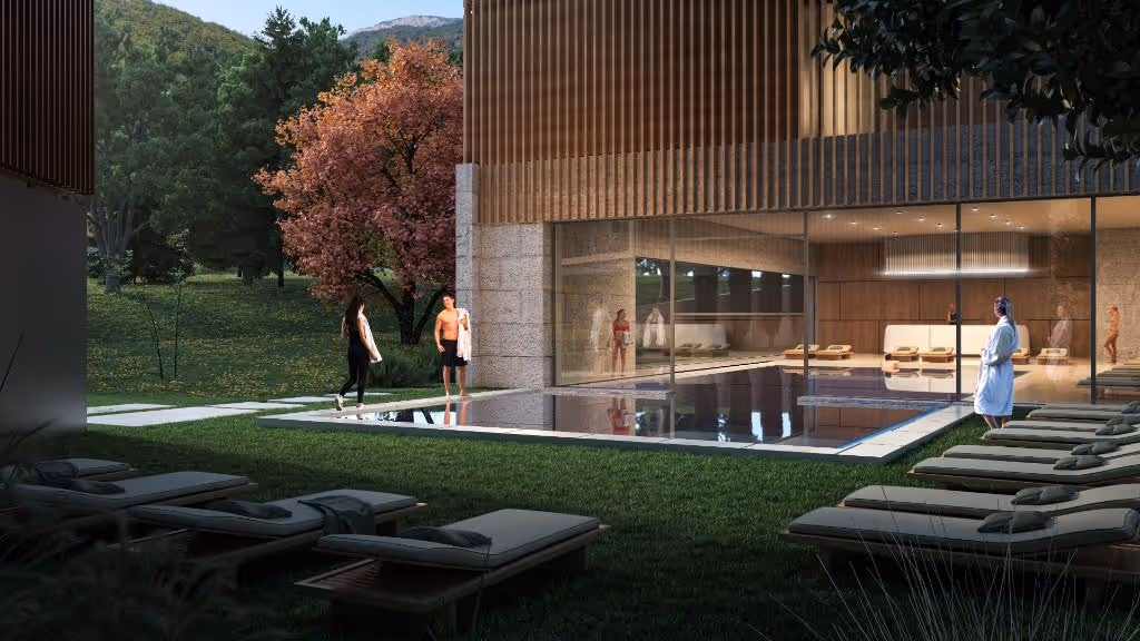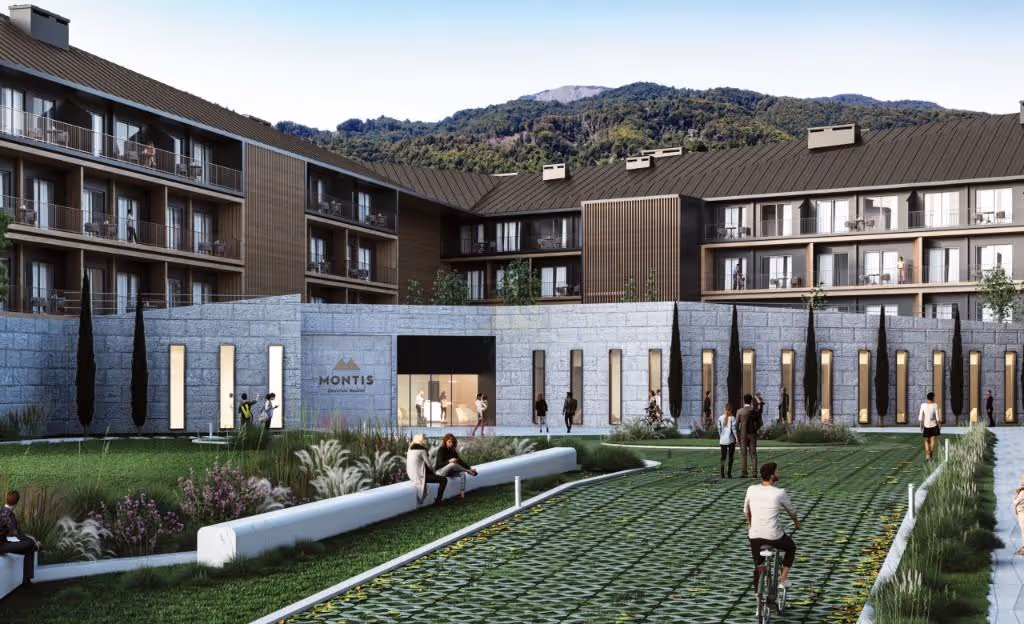 Contemporary Montis Mountain Resort design took inspiration from the traditional mountain style, integrating local materials such as wood and stone with modern glass and metal that perfectly blend the development with the natural surroundings.