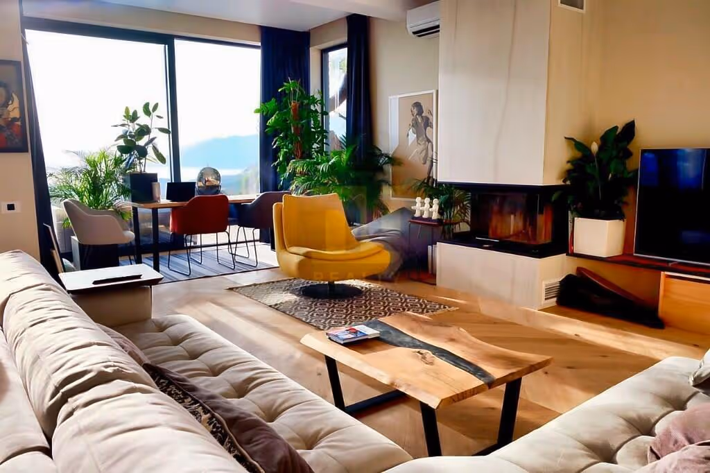 Houses are located in a green area on a hill without tourist traffic, which allows you to enjoy your rest all year round. It is 500m away from the city school, shops, and cafes, 4 km to large shopping centres, and 2.5 km to the beach and Tivat Airport.