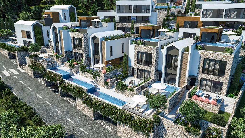 Each townhouse has its surrounding area, a garage, a barbecue area, and spacious green terraces. The villas consist of townhouses, apartments, duplex apartments, and penthouses. The townhouses provide 2 options for swimming pool placement: on the roof terrace or in the surrounding area.