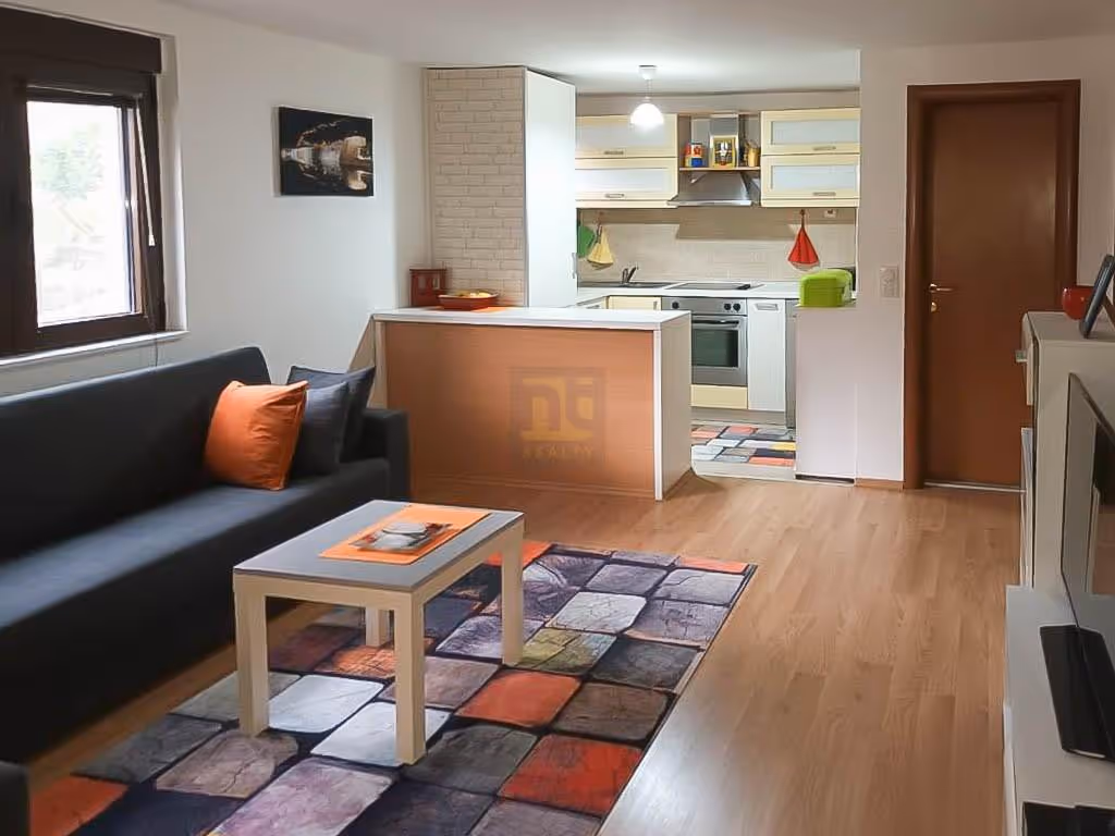 This beautiful apartment with a total area of 70m² is located in Prcanj, in a private residential building with only three apartments, open parking, and a large swimming pool.