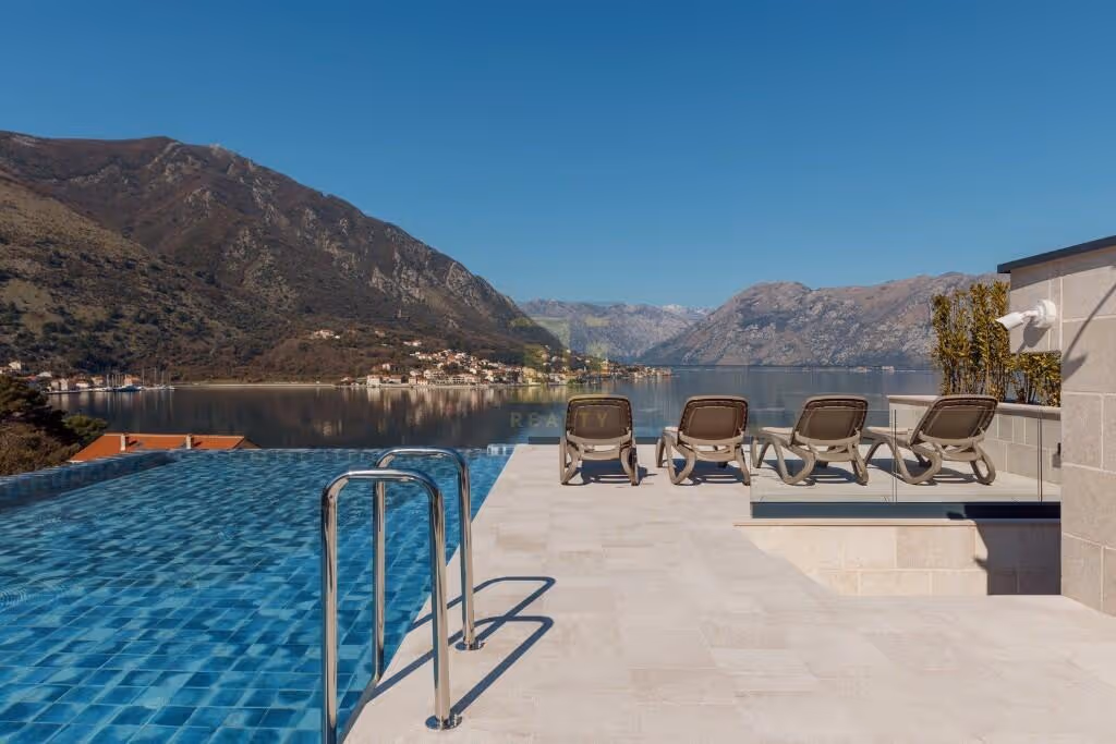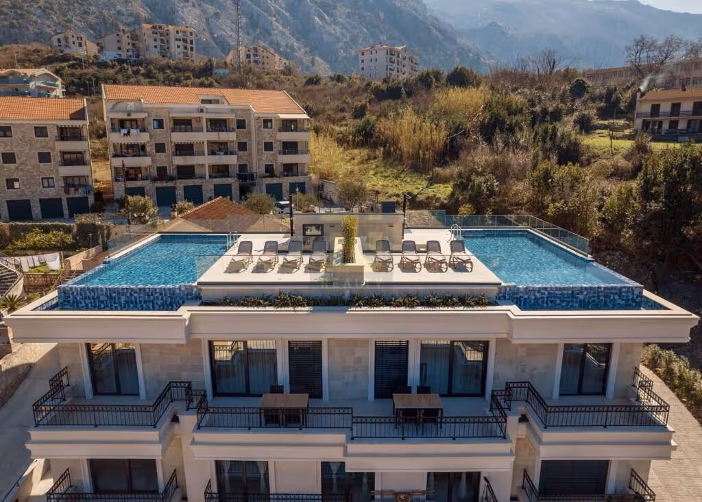 A luxurious new project in Dobrota, just 200m from the coast. The building features an infinity pool on the roof and offers beautiful views of the bay.