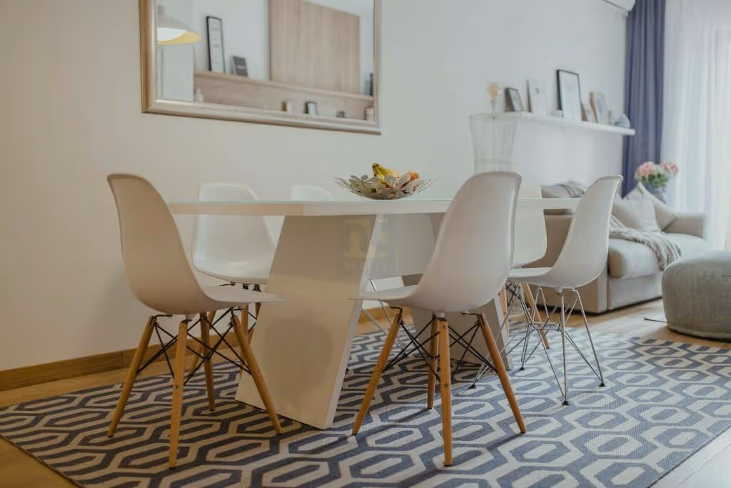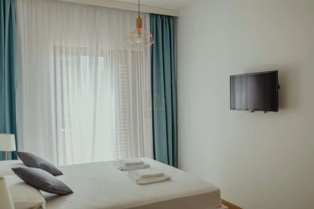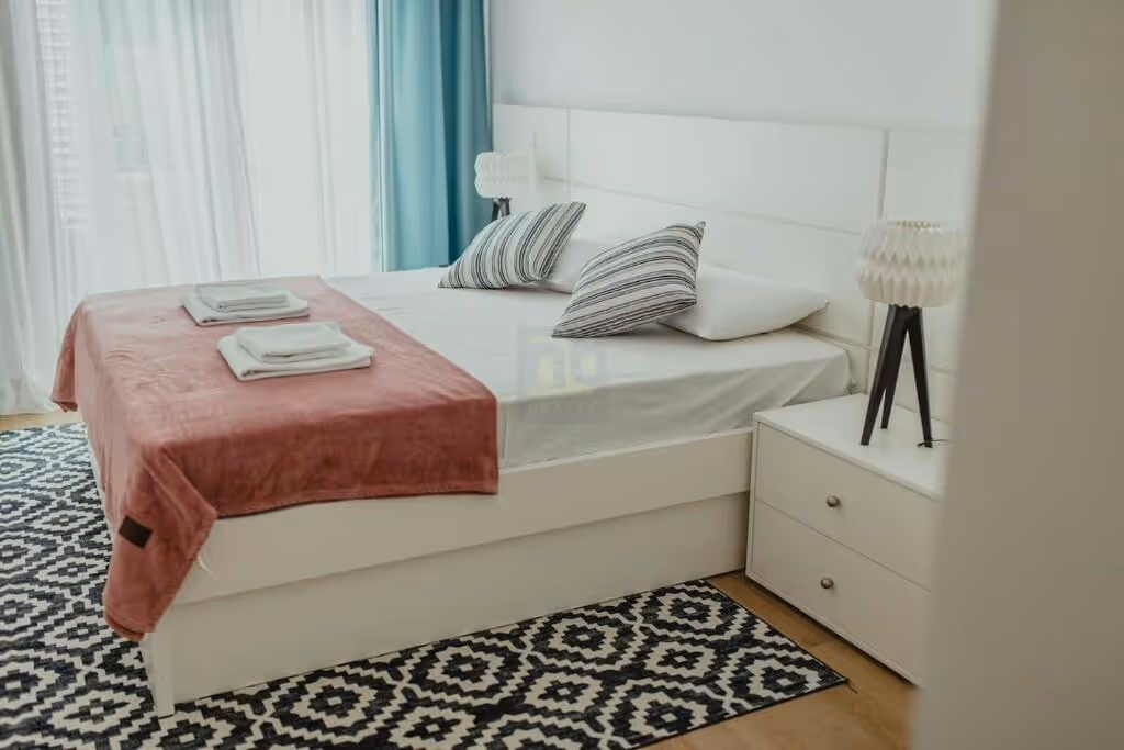 This residential building was completed in 2017, and the apartment has a total area of 100m². It features an open-plan living room, kitchen, and dining area with modern furniture. There are two bedrooms, two bathrooms, and a balcony with a beautiful view — perfect for entertaining family and friends. The interior has been professionally designed to create a modern and inviting atmosphere.