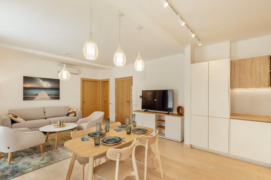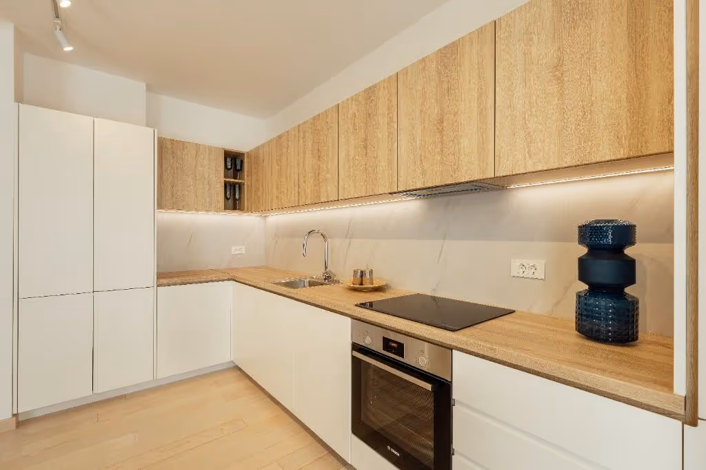 The complex features a total of 67 thoughtfully designed apartments, catering to a range of lifestyles and preferences. Whether you seek the intimacy of a studio, the functionality of a one-bedroom, or the spaciousness of a two-bedroom apartment, you’ll find the perfect home to suit your needs. Each apartment comes with a fully finished interior, integrated kitchen, and high-quality fixtures.