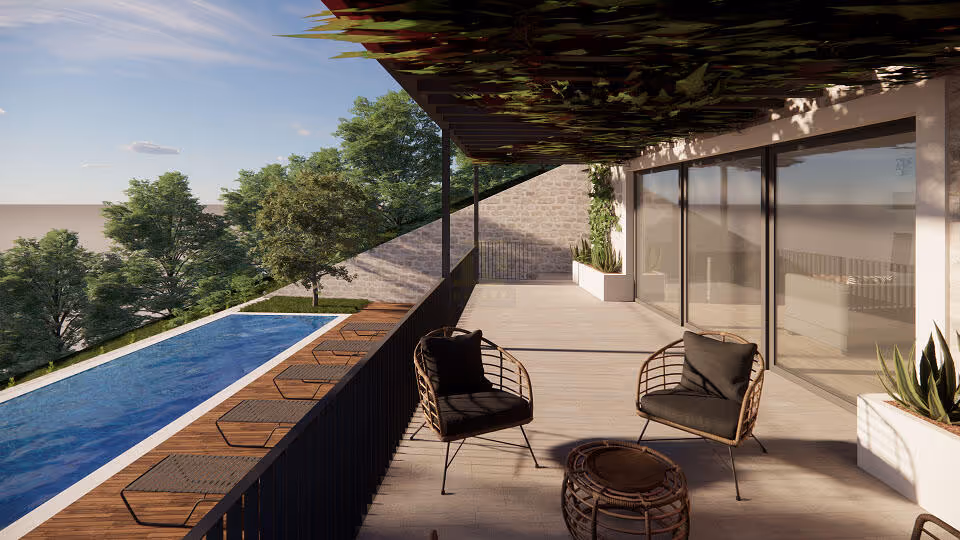 A 4-bedroom, 4-bathroom villa with pool enjoying open views over Tivat Bay.
