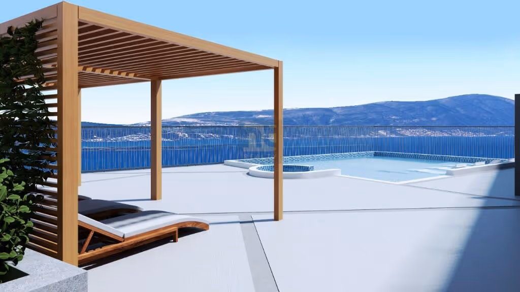 Each apartment features an open-plan design, effortlessly connecting the living room, kitchen, and dining area. Fully equipped bathrooms and spacious terraces add to the functionality, while underfloor heating ensures warmth throughout the year.