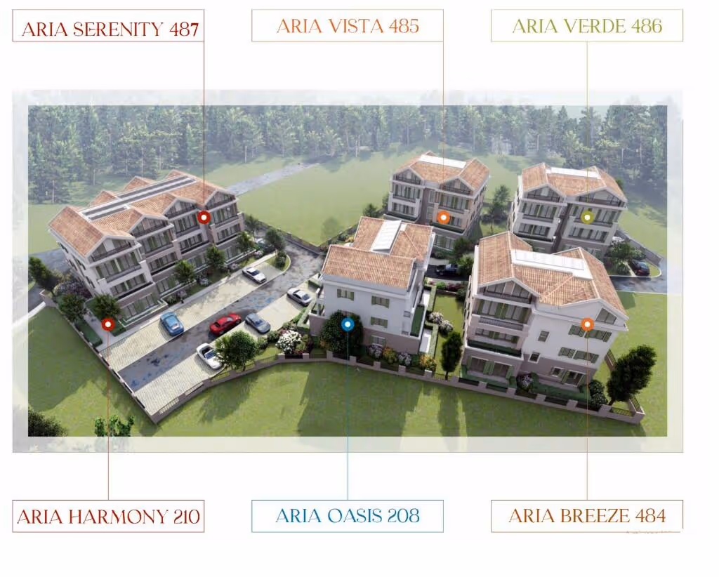 Located in a quiet suburb of Tivat, "Aria Residences" offers a perfect balance between modern life and natural surroundings. Our exclusive residential and business complex consists of six carefully designed buildings - Aria Verde, Aria Vista, Aria Breeze, Aria Oasis, Aria Harmony and Aria Serenity. This unique project offers a total of 54 units, with square footage ranging from 42 to 76 m², providing a wide range of options for choosing a space that perfectly suits the needs of both the individual and the entire family. Each building has its own identity, and together they form a harmonious whole in which the safety and privacy of the clients come first.