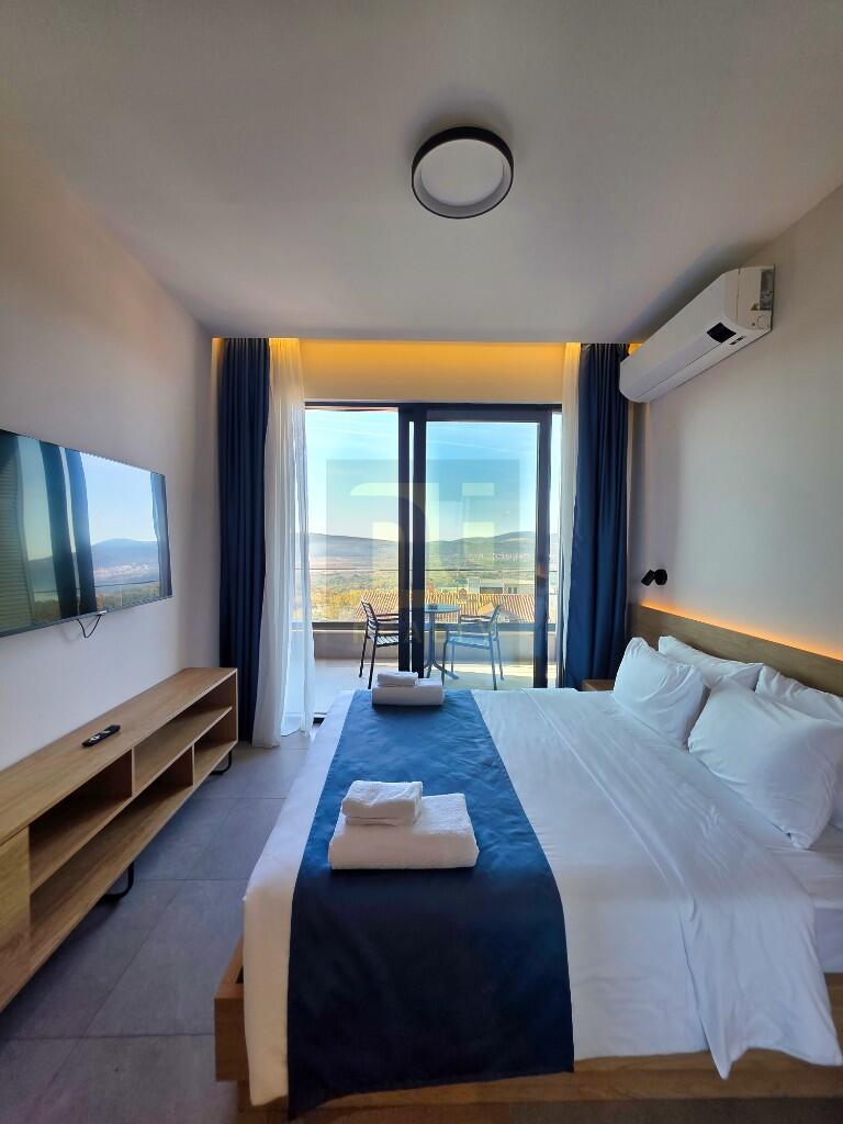 Эта светлая, солнечная студия отлично использует свое пространство, предлагая удобную планировку с современной кухней и гостиной, хорошо оборудованной ванной комнатой и собственной террасой с захватывающим видом на Тиватский залив.