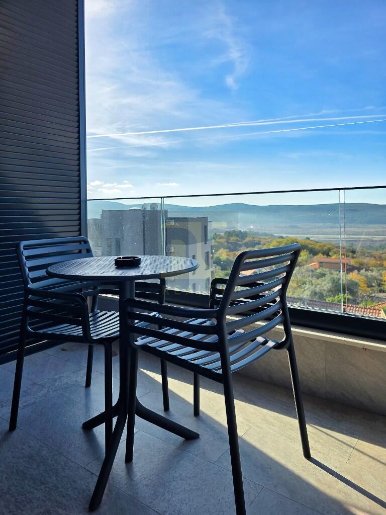 This bright, sun-filled studio makes excellent use of its space, offering a comfortable layout with a modern kitchen and living area, a well-appointed bathroom, and a private terrace featuring breathtaking views over Tivat Bay.